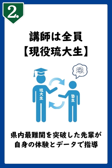 指導するのは、沖縄の受験事情を熟知し、自らも難関を突破した現役琉大生(Bridge for Youth)。憧れの先輩が、学習計画からメンタルケアまで徹底サポートします。